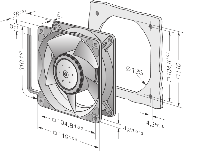 Axialfläkt 24VDC 119x119x38mm 4114N/2H8P